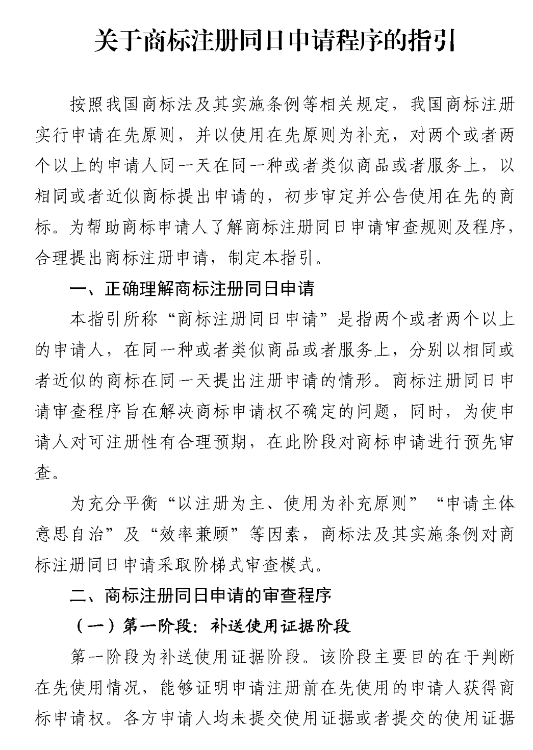 国家知识产权局发布《关于商标注册同日申请程序的指引》