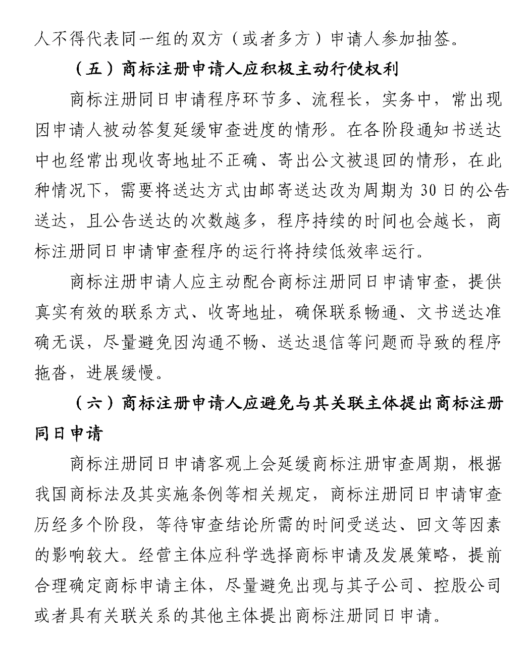 为深入贯彻落实《“十四五”国家知识产权保护和运用规划》关于加强知识产权源头保护,强化知识产权申请注册质量监管的部署,帮助经营主体了解商标注册同日申请相关法律规定及审查流程,引导商标申请人遵循诚实信用原则,合理提出商标注册申请,国家知识产权局组织编写了《关于商标注册同日申请程序的指引》,供相关经营主体参考使用。