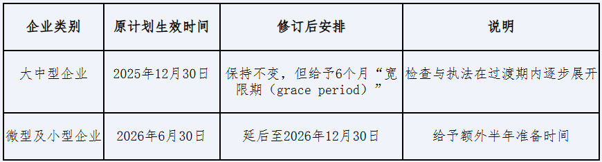 考虑到IT系统承载压力和企业准备周期,欧盟委员会提出新的实施时间安排: